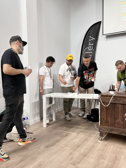 La emocionante final se dio entre Álvaro Notario contra Daniel Viñuales que, tras una difícil decisión para los jueces, dieron como ganador al primer puesto a Álvaro Notario. Los ganadores del 1º, 2º y 3er premio se llevaron a casa un trofeo junto con una cafetera Aeropress de colores para cada uno ¡Muchas felicidades a nuestros campeones castellano manchegos!